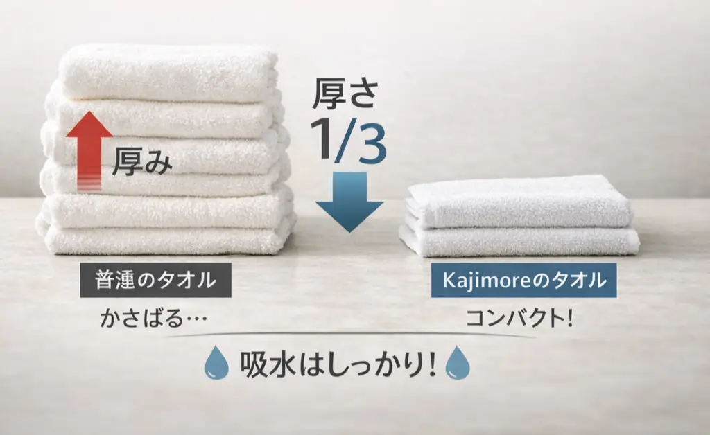 普通のタオルの構造だと、かさが高くなるのは避けられません。